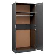 This compact wardrobe makes your clothes or daily accessories easy to access. It will provide a perfect storage solution and add chic touch to your existing home. This wardrobe is made of premium board, which ensures it sturdiness, durability and long service life. It provides large compartment with a hanging rod, offering you ample space both for your longer outfits and other folded clothes or accessories, such as sweaters, jeans, hats, hand bags, etc. The product is easy to clean. This wardrobe is easy to assemble.