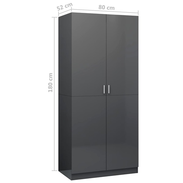 Wardrobe High Gloss Grey, Chipboard