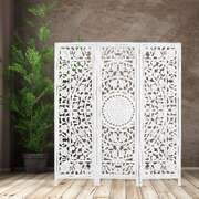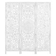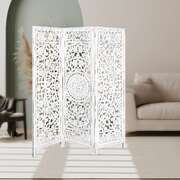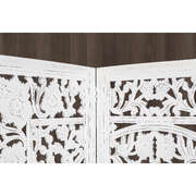 Effectively use the available space in your home with this room divider. The timber screen creates a private space in a room while also adding to its aesthetic appeal. The screen in white antique finish is designed in an exotic pattern using sustainably harvested solid mango wood. This particular wood is well-known for its high water resistance, long durability, and beautiful texture. The traditional style timber screen with strong legs can extend up to 2 metres and serves as both a space-saving and a space-dividing furniture piece. The artistic work on the screen, which includes engraved flower replicas at regular intervals, gives it a stunning appearance, filling the entire area with beauty and positivity. The screen is divided into 3 panels that are easily foldable. Lightweight yet strong, the room divider uses high-performance metal hinges that can withstand daily use. This fully assembled timber screen comes with a one-year warranty.