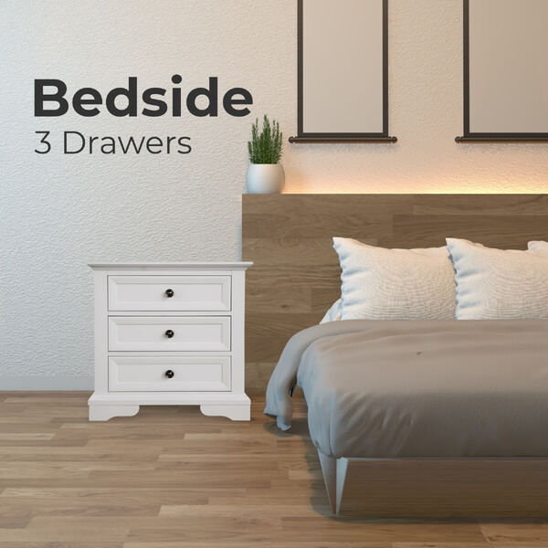 Bedside Table 3 Drawers Storage Cabinet Nightstand End Tables - White