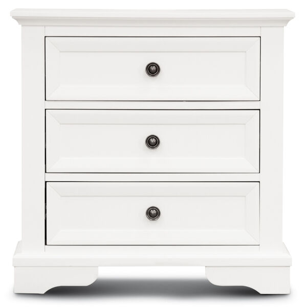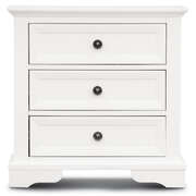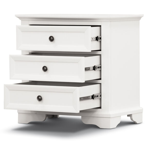 Stop wasting time worrying about where to keep that diary that you need in your bedroom on a regular basis. Bring home this 3-drawer bedside table and solve your bedroom's storage space problem forever. The bedside, designed in a coastal style, is an excellent addition to your bedroom. Its drawers have full metal extension runners and shiny, black metal knobs. The top drawer has black felt for the safe storage of delicate items. The bedside table is made of sustainably harvested solid acacia timber. The wood is known for its good looks, shock-resistance, and durability. The furniture piece in a white painted finish goes well with a variety of interior decor styles, and a one-year warranty is included with the fully-assembled bedside.