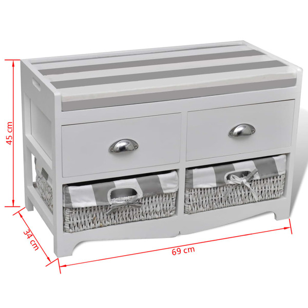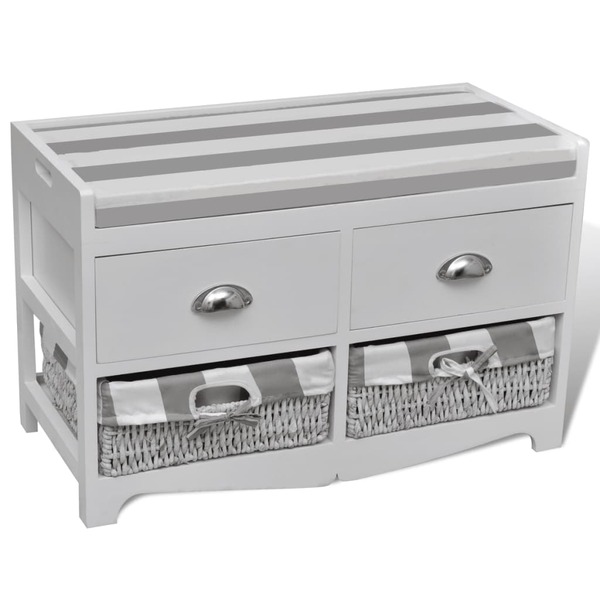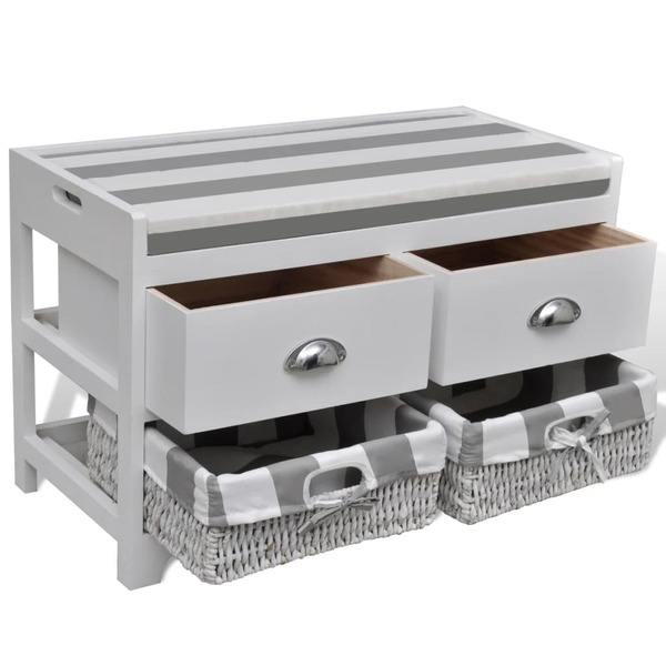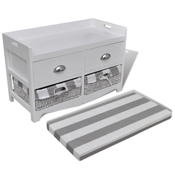 White Storage & Entryway Bench with Cushion Top 2 Drawer 2 Basket