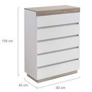 White Wooden Chest of 5 Drawers Tallboy