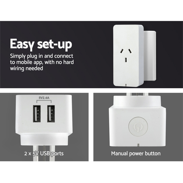 Creating a smarter home is easy with our Smart Plug, which in addition to the standard power socket, has two 5V USB ports for you to connect and power up to three devices at once. Simply plug in to any standard power outlet, set up the mobile app and connect to the Wi-Fi network to transform all your old electronic devices into smart ones. The mobile app lets you control the plug remotely and monitor energy usage. If you forget to turn something off before you leave the house, just turn it off through the app. Or use the timer to set and forget, so that you never leave devices running. You can even set the plug to turn on and off at scheduled times to suit your own lifestyle and conserve energy. Better still, our smart plug is compatible for use with Amazon Alexa and Google Assistant and their voice control functionality, allowing you to give voice commands to control your devices when your hands are occupied. So use our Smart Plug to get your house all heated or cooled before you return. Turn on some lights while you are on holiday to appear at home. Or get the kettle boiling while you are still in bed. The possibilities are endless.