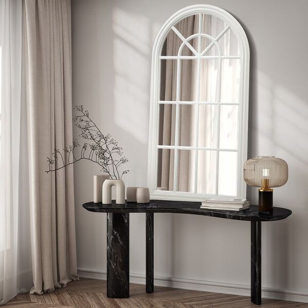 Wooden Window Mirror Arched Wall Mirrors 130x70cm White