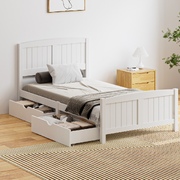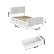 Wooden Bed Frame King Single Size Base with Trundle Storage Drawers White