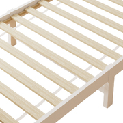 Structurally, the pine wood bed frame is built strong and long-lasting to enable more structural integrity and durability while the central support legs, strong plywood slats and quality fixings ensure robust use time and again. Your restful sleep will never be disturbed by squeaks and odd sounds coming from under the bed. Available in Single, King Single, Double, Queen and King sizes to suit your Australian-sized mattresses and bedroom requirements to a T.