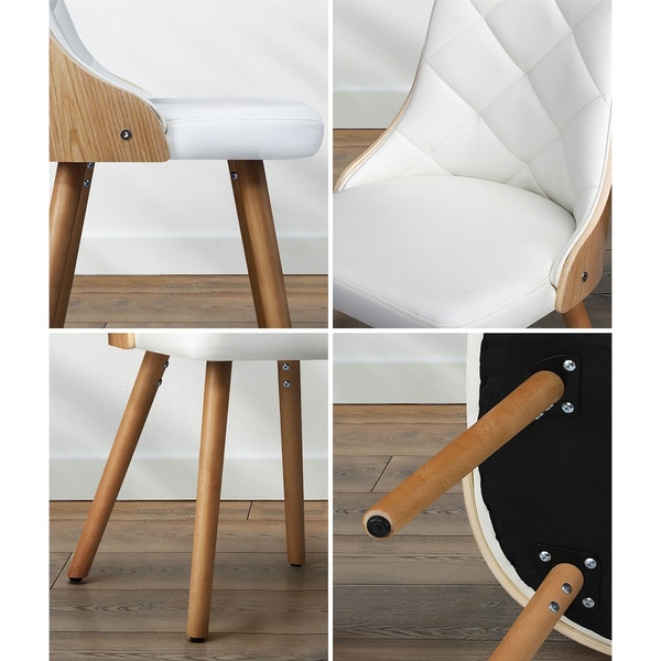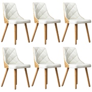6x Dining Chairs Wooden Chair Kitchen Cafe Leather Padded White