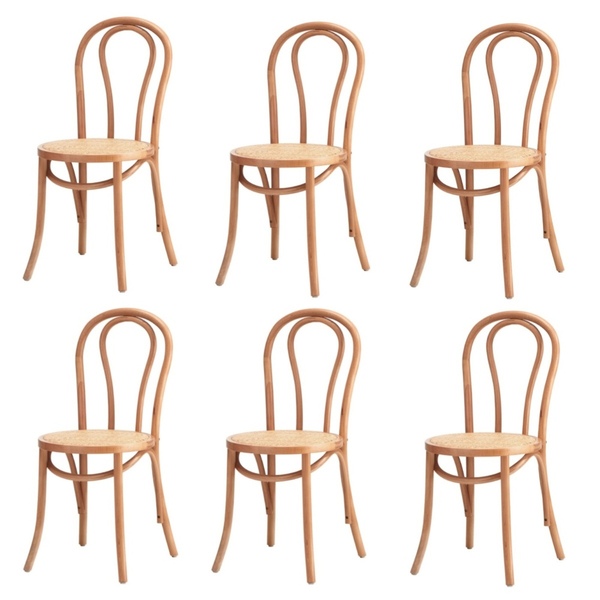 6x Dining Chair Solid Wooden Chairs Ratan Seat Natural