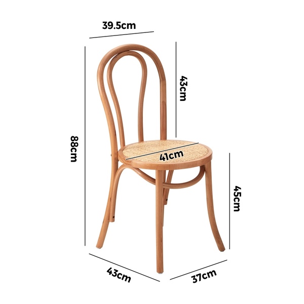 Crafted with precision, the chairs are supported by a durable rubberwood frame and legs. This sturdy construction ensures longevity and stability, making these chairs suitable for both daily meals and special gatherings. The combination of the bentwood backrest, rattan seats, and rubberwood frame creates a cohesive and inviting design.