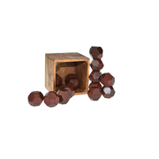 12 wooden cube in a wooden box to challenge the kid's mind and imagination! It's very easy to empty the box, but can you stack the blocks back in so that they fit? A challenging puzzle for ages 12+