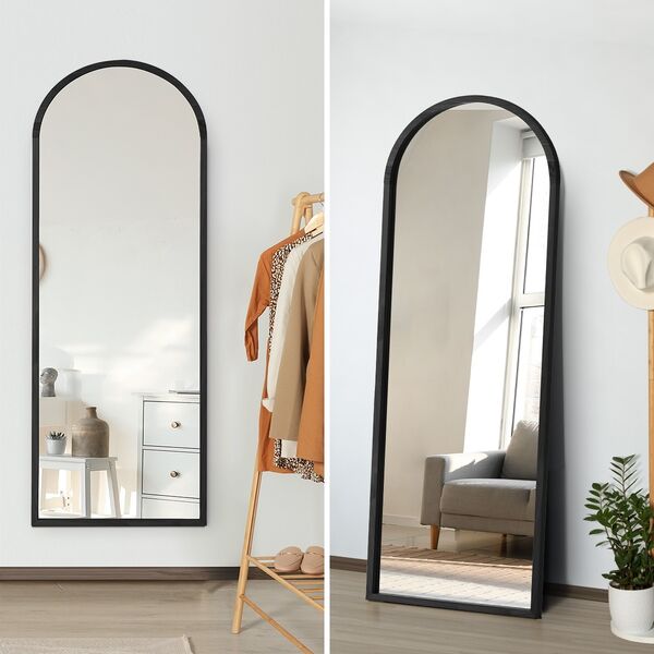 Wooden Full Length Mirror 180x70cm Arched Floor Mirrors Black