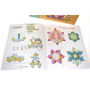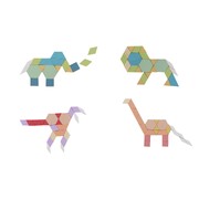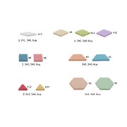 98 pc set of wooden tiles in geometric shapes and assorted colors. Arrange them to mattern beautiful pictures and patterns