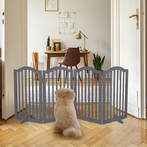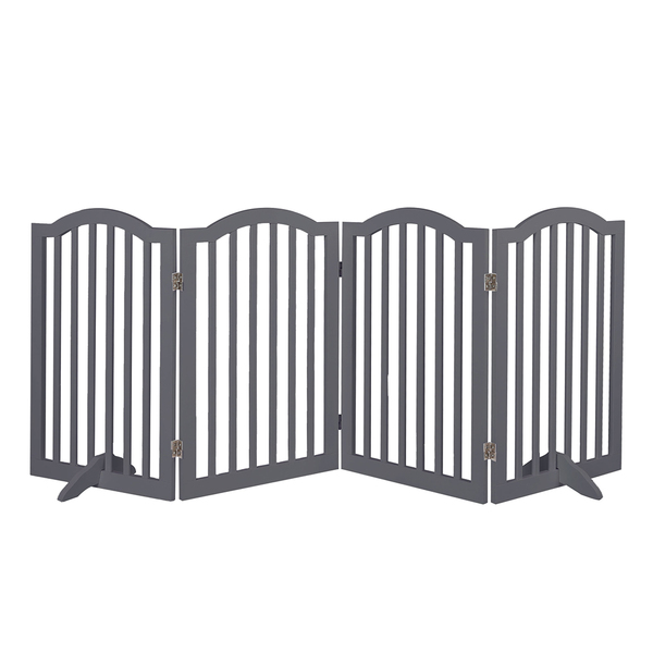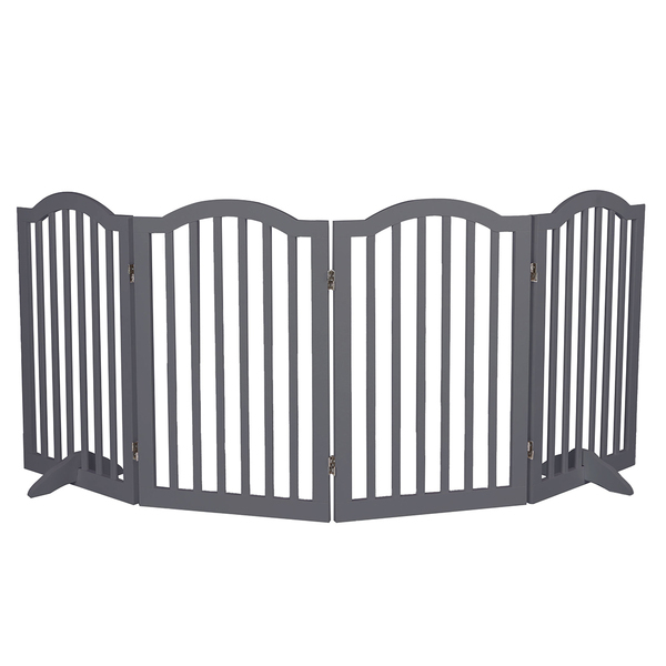 Wooden Pet Gate Dog Fence Safety Stair Barrier Security Door 4 Panels Grey