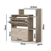 Wooden Shoe Storage Cabinet 2 Doors with Display Shelves for Hallway