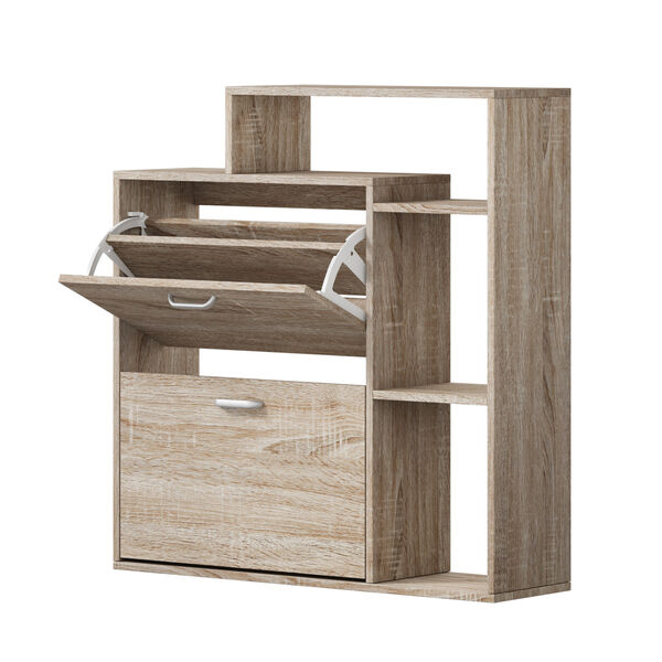 Conveniently built into the side of the shoe storage cabinet is a multi-level display shelf that offers more storage or display area that deems fit for your purpose. Just perfect to showcase your treasure mementos, collectibles or even potted plants to add more natural vibes to the entire ensemble.