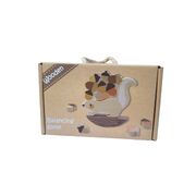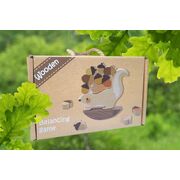 Squirrel balancing game of skill. Place your squirrel on the curved base. See who can pile the most acorns on the squirrel's back without causing a collapse. Gift boxed