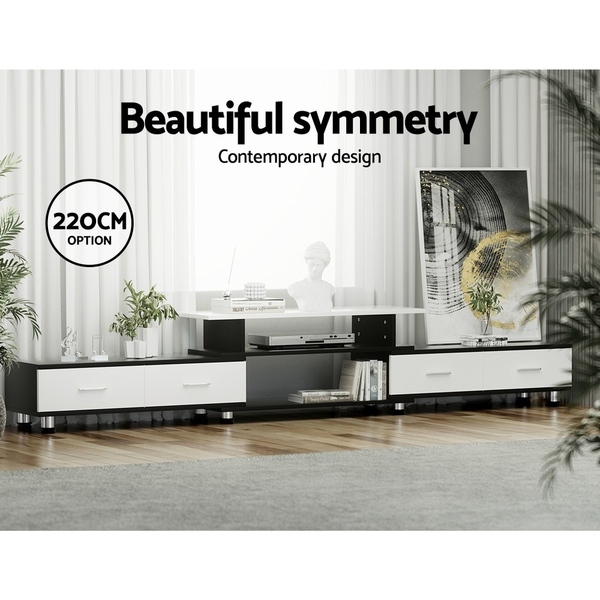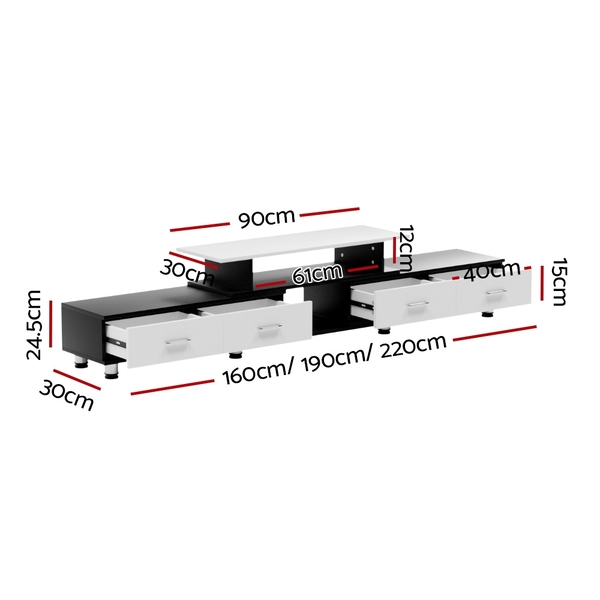 TV Cabinet Entertainment Unit Extendable 160CM To 220CM 4 Drawers White