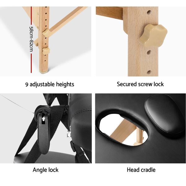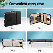 Massage Table 75cm 3 Fold Wooden Portable Beauty Therapy Bed Waxing Black