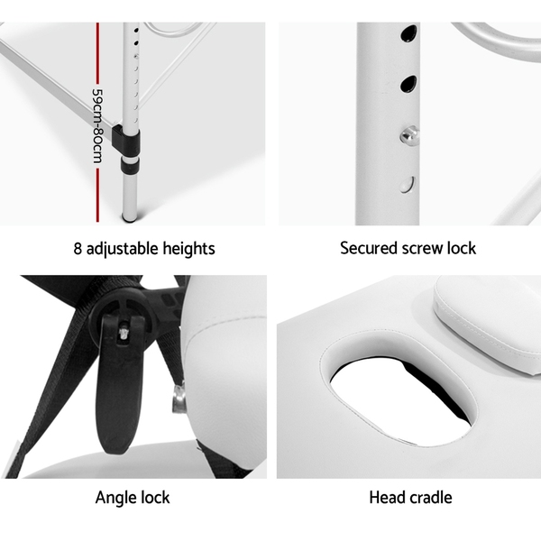 Zenses 80cm Wide Portable Aluminium Massage Table 3 Fold Treatment Beauty Therapy White